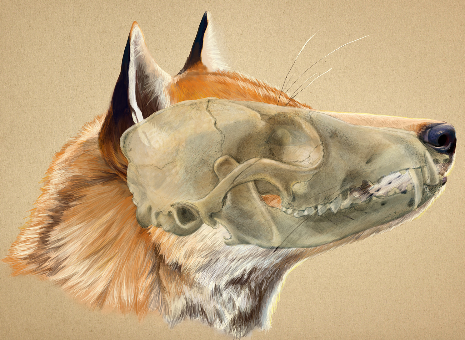 Fox Head Anatomy, Graphite sketch & Digital, 11.5x15